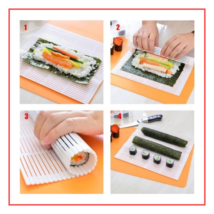 MUDAH DIGUNAKAN Cukup letakkan bahan-bahan sushi diatas cetakan setelah itu gulung dengan cetakan ini untuk menghasilkan sushi dengan bentuk yang sempurna.