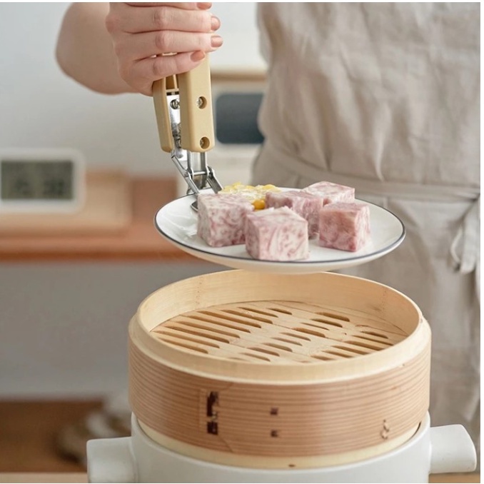 Alat penjepit dari bahan stainless steel untuk menjepit mangkok, panci, piring, yang panas. Kekuatan alat jepit ini mampu mengangkat beban hingga 8 kilogram.
