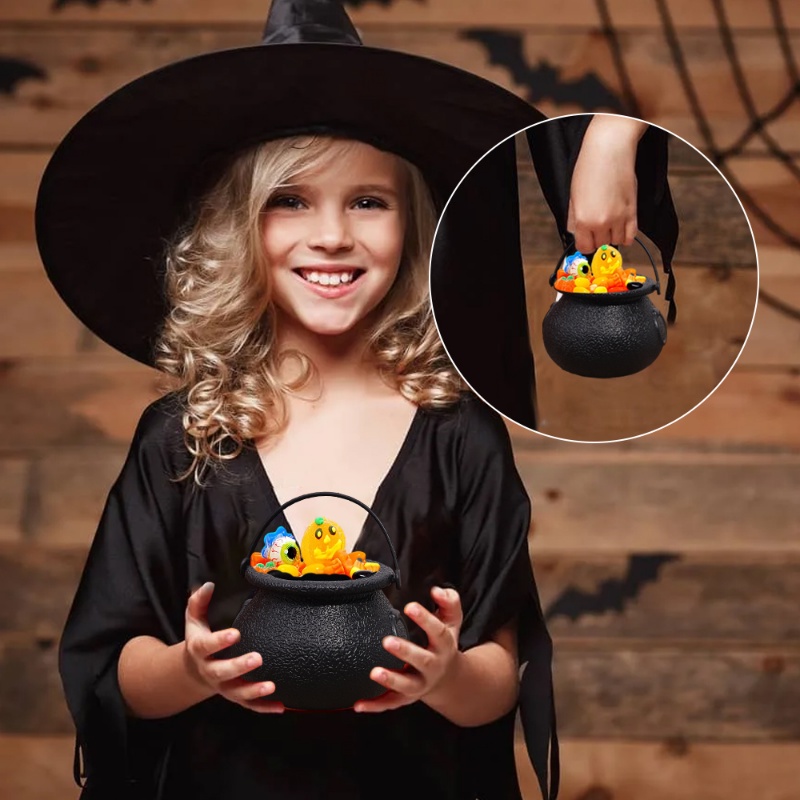 Detail Alat Peraga Dekorasi Pesta Halloween/Candy Decoration Snack Cans/Pot Toples Penyihir Hitam/Toples Tempat Kuali Penyihir Mini/Trick or Treat Mainan Anak/Bucket Permen Tengkorak Halloween