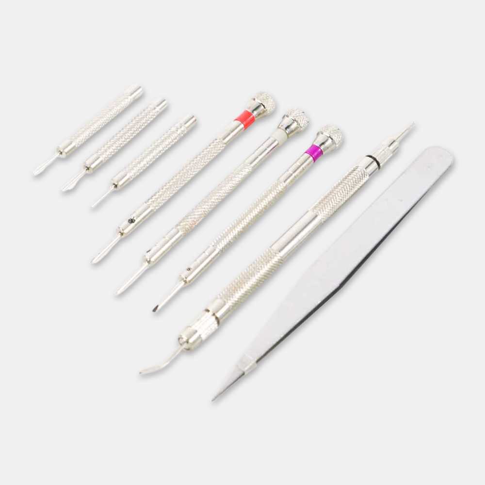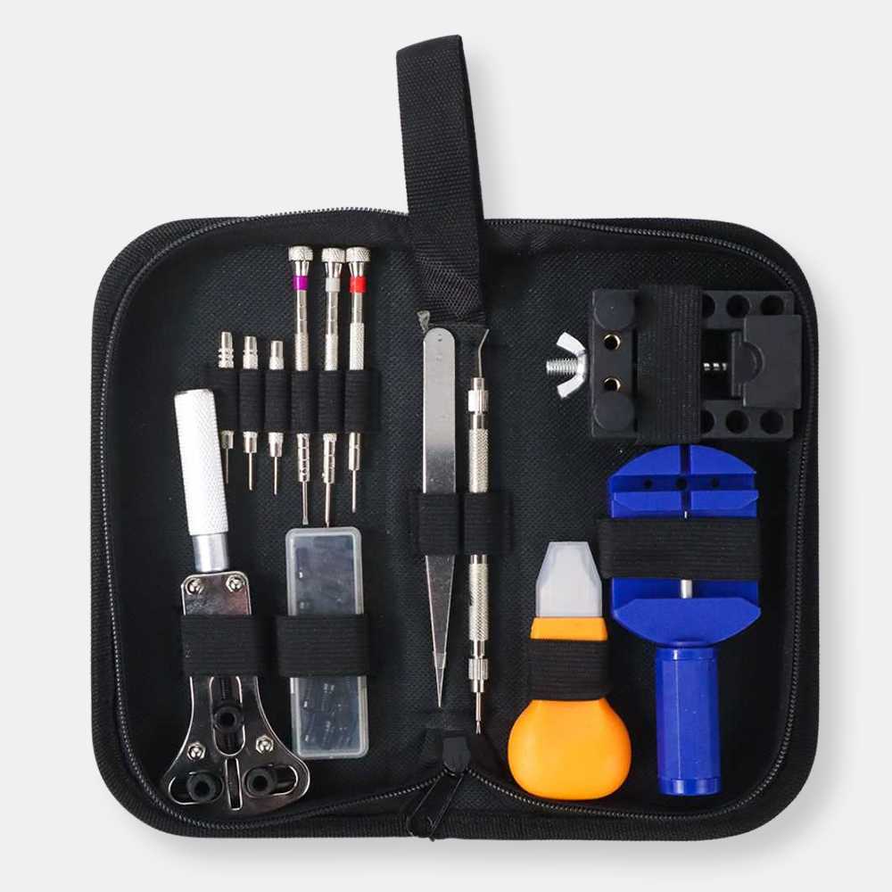 Dengan perkakas reparasi jam tangan ini, Anda dapat membuka dan mereparasi jam tangan Anda dengan lebih mudah. Set perlengkapan ini wajib dimiliki bagi Anda yang suka mengoleksi atau mengotak-atik koleksi jam.