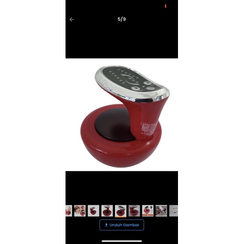 Spesifikasi Voltase DC 5 V Daya / Power 12 W Material ABS Dimensi Tinggi Unit Utama: 13 cm Lebar Unit Utama (Maks.): 11 cm Diameter Kepala Pijat: 7 cm Lain-lain Warna Cangkang: Merah Warna Lampu LED: Cahaya Biru--Indikator Intensitas, Lampu Merah--Indikator Suhu Tingkat Suhu: 6 Tingkat Tingkat Intensitas: 6 Tingkat