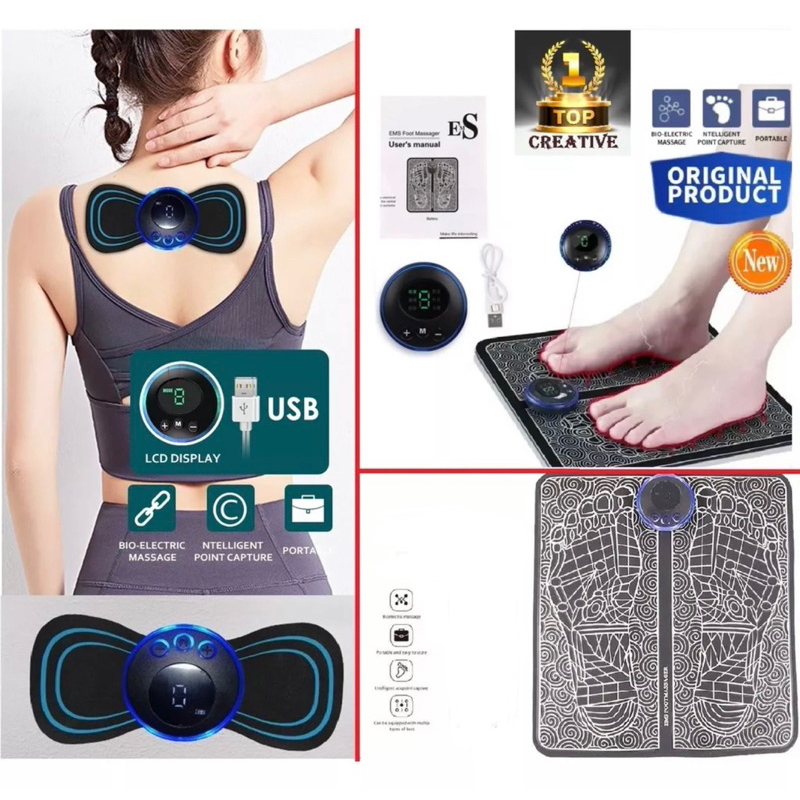 Diskripsi : Alat pijat elektrik Foot Massager EMS dan mini Massager ini dapat meningkatkan sirkulasi dengan mengontraksikan otot-otot badan serta membantu pegal pada tangan, kaki, punggung, ataupun pinggang. Dengan layar LCD 19 tingkat intensitas yang dapat disesuaikan dan 8 mode getaran. Dapat digunakan dimanapun karena dibuat dengan model mini dan dengan tenang saat menonton TV, membaca, bekerja di kantor atau bersantai. Nyaman digunakan karena ringan, mudah dilipat, dapat diisi ulang, dan mudah dibawa kemana-mana. Terbuat dari bahan lembut, permukaan kulit, dapat dikeringkan dengan handuk basah setelah digunakan.