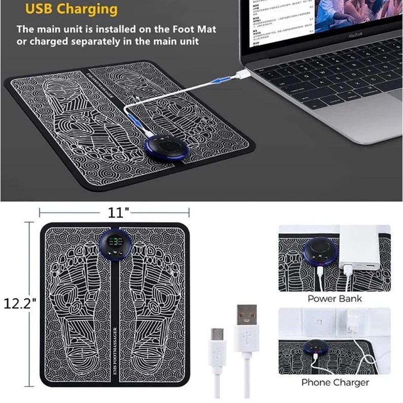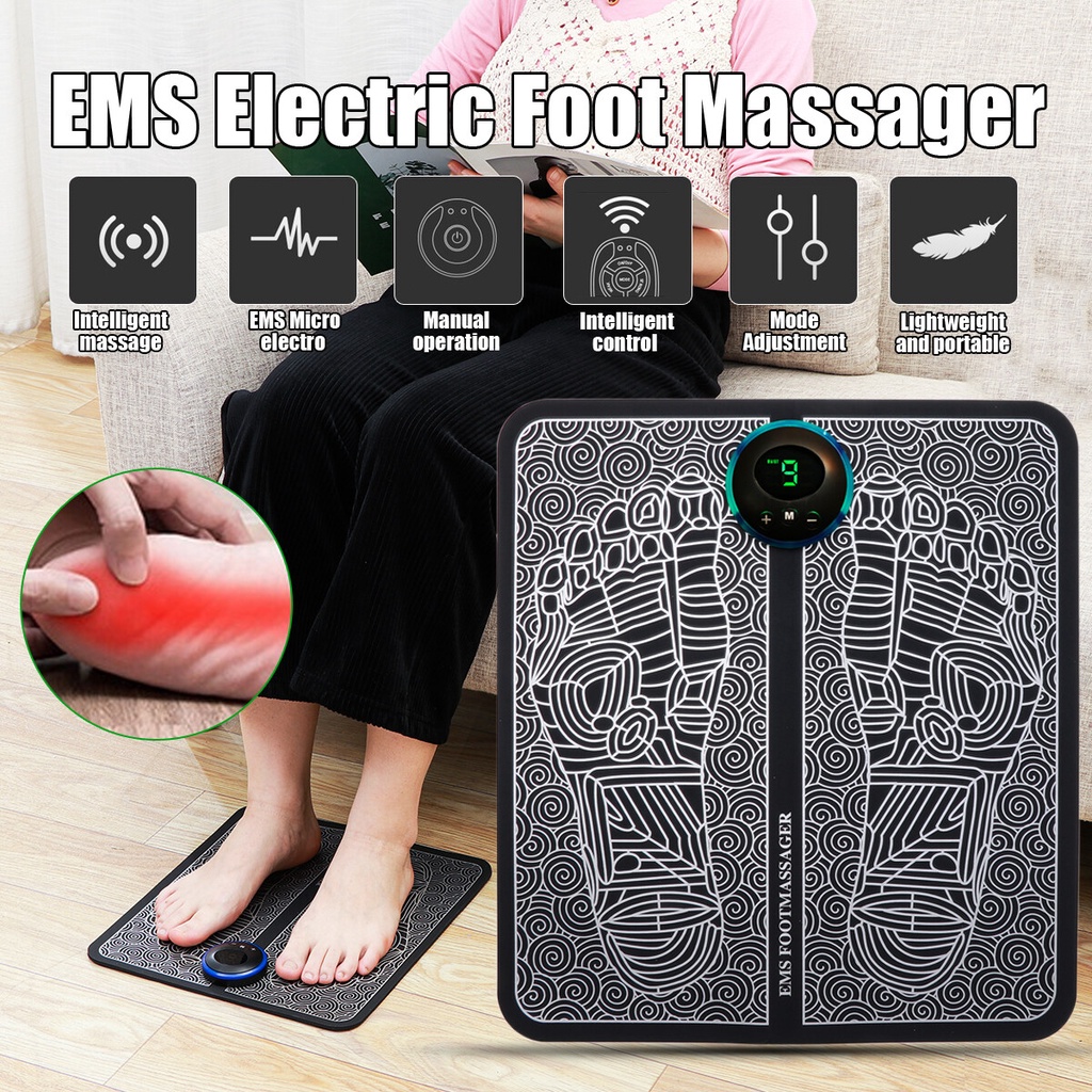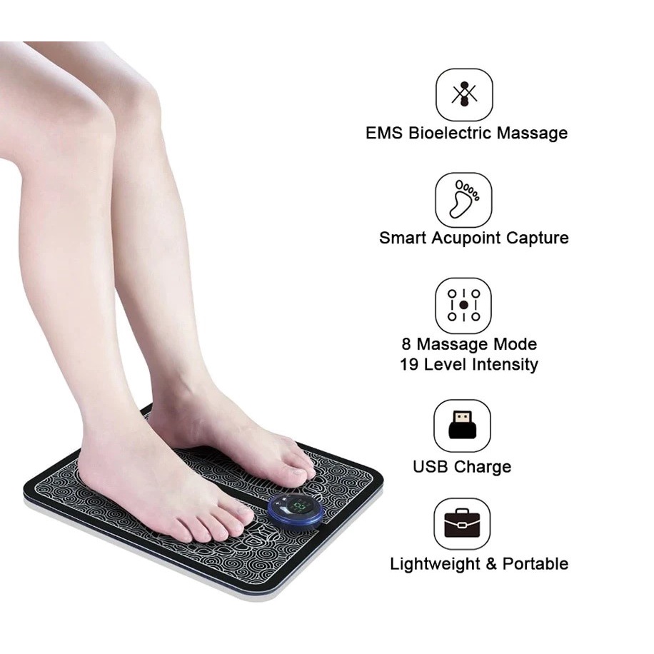 EMS Foot Massager Bantalan kaki yang lembut dan nyaman, ringan, dapat dilipat, mudah dibawa kemana-mana, dapat dikeringkan dengan handuk basah setelah digunakan. Pijat kaki elektrik ini menawarkan mode dan intensitas perawatan yang berbeda untuk telapak kaki Anda. Menggunakan teknologi EMS (Electrical Muscle Stimulation) untuk pijat kaki, pergelangan kaki, tendon achilles, dan otot betis, untuk melancarkan sirkulasi darah dan merilekskan kaki.