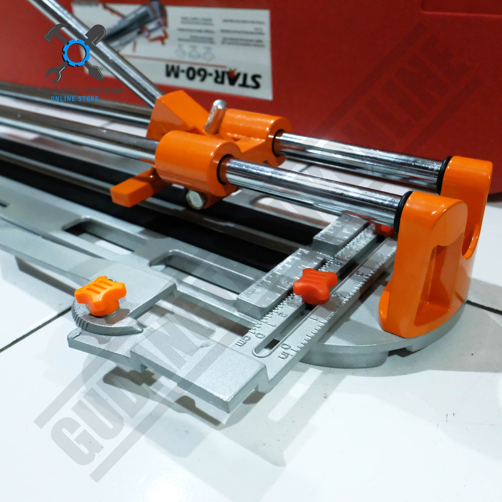 spesifikasi * merk : Ruby Star * Tipe : Star-60-m * Dudukan berbahan alumunium dan bagian pendukung berbahan ABS * Dapat memotong sampai ketebalan 12 mm * Aman dan mudah untuk digunakan * Mata potong dan garis potong bisa dilihatsecara langsung * Dengan sistem moving breaking *Termasuk mata potong 6 mm berbahan tungsten carbide