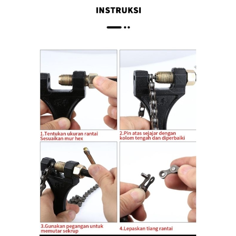 1.Pemotong rantai ini dapat digunakan untuk memotong rantai 420, 428 dan 530.
