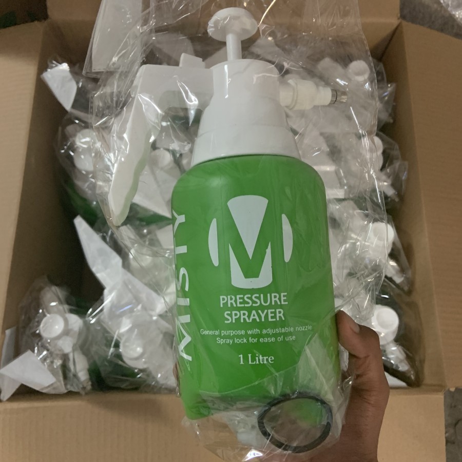 Sprayer otomatis tinggal pompa beberapa kali air jadi kencang Kapasitas Hand Sprayer MISTY = 1 Liter Pompa Manual Tabung plastik tebal sehingga tidak mudah pecah Dimensi 10 x 24 cm