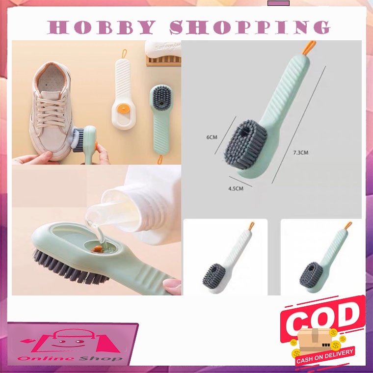 Spesifikasi : - Bentuk sikat yang mudah digenggam - Bulu sikat yang halus - Dilengkapi dengan dispenser sabun cair untuk mempermudah untuk mencuci - Bisa digunakan untuk mencuci sepatu, baju, membersihkan kamar mandi, mencuci piring, dll - Dilengkapi strap sehingga mudah digantung.
