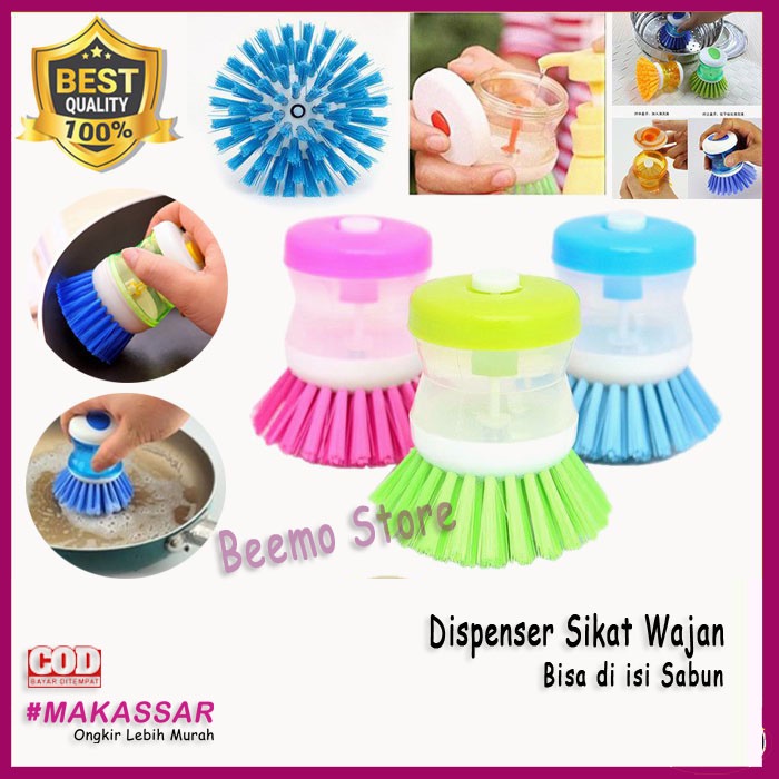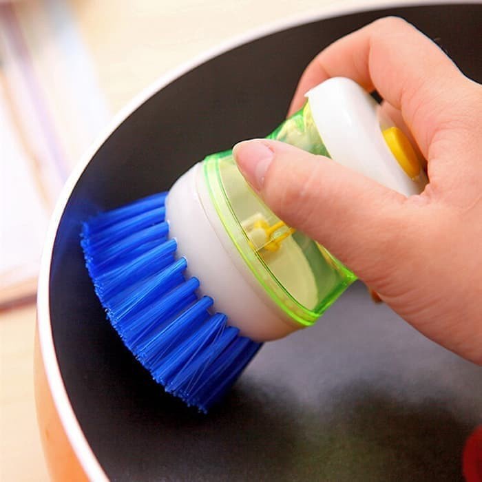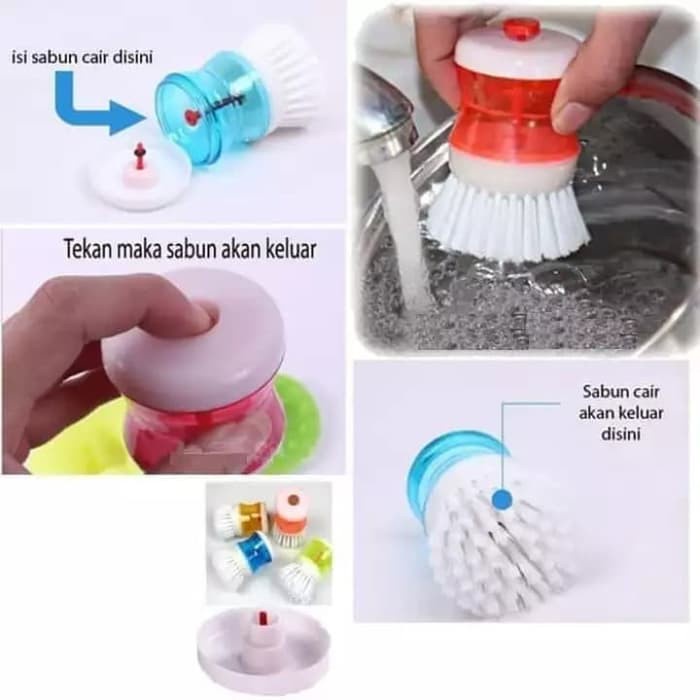 Alat sikat panci inovatif ini dilengkapi dispenser sabun cair. cukup tekan, maka sabun akan keluar otomatis. dengan sikat halus, membantu membersihkan kotoran membandel. jika sikat sudah aus, lepaskan dari tempatnya dan bisa diganti dengan sikat halus yang baru.
