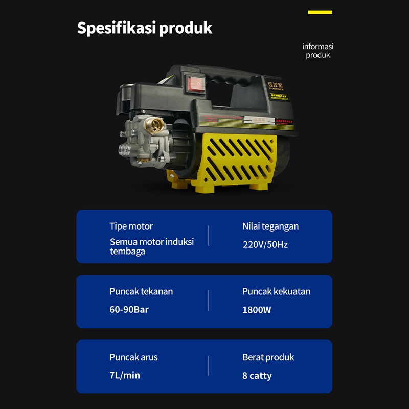 - Kepala Pompa Terbuat Dari Tembaga , Tidak Mudah Korosi , Gesekan Berkurang , Tingkatkan Masa Pakai Mesin Cuci Mobil - Kepala Pompa Tekanan Tinggi Komersial : 1. Membersihkan Debu Dengan Mudah Saat Dicuci 2. Mencegah Pompa Tersumbat 3. Mencegah Ledakan , Aman Digunakan - Tiga Jenis Air Untuk Dipilih , Pembersihan Lebih Baik : 1. Bentuk Kipas 0-120° ,Area Cuci Besar , Bisa Cuci Mobil , Bisa Siram Bunga 2. Bentuk Lurus 0°, Semprotan Kuat , Cuci Mobil Tidak Merusak Cat 3. Efek PA Profesional , Dapat Menghasilkan Busa , Arah Semprotan Lebih Lebar - Pegangan Dipertebal:Bahan Tebal . Tidak Mudah Rusak , Mudah Diambil - Kotak Plastik Khusus :Seluruh Mesin Dibungkus Sepenuhnya , Kekuatan Tinggi , Tahan Guncangan , Anti Pecah , Anti Penuaan - Kaku Berkualitas Tinggi , Tebal Dan Tinggi Untuk MElindungi Mesin , Tahan Gesek