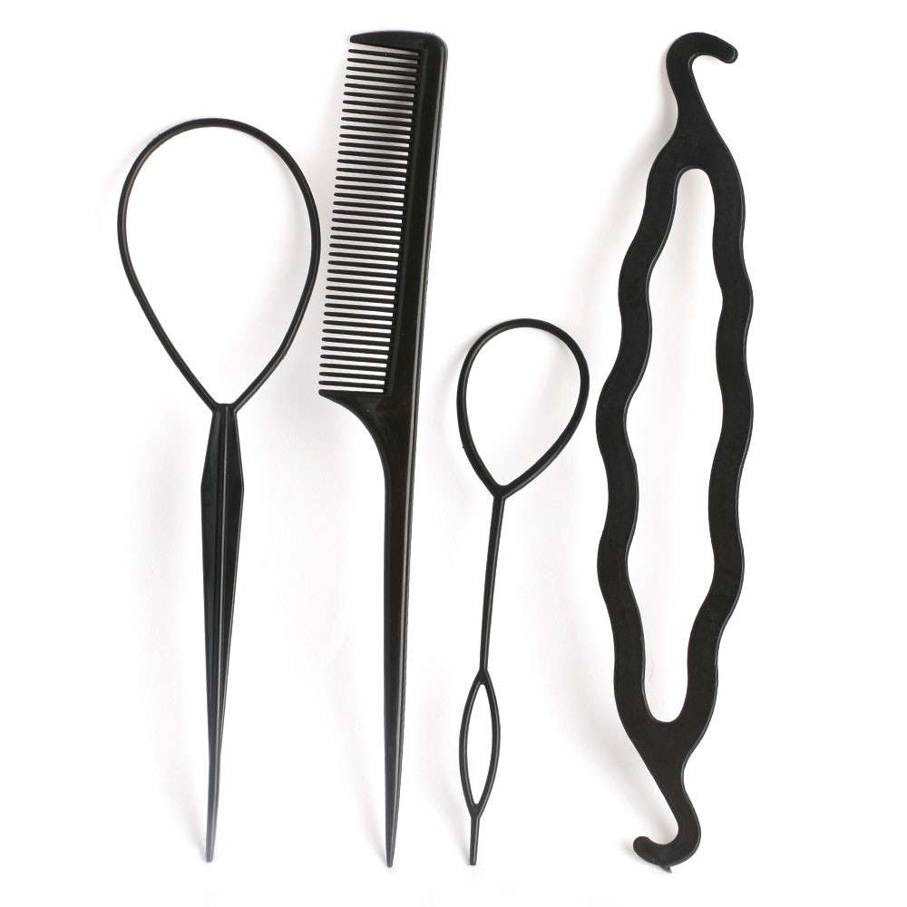 Peralatan set untuk menyanggul rambut ini hadir dengan 4 macam alat yang masing-masing berguna untuk memudahkan Anda menghias rambut Anda. Terbuat dari bahan plastik yang awet digunakan.