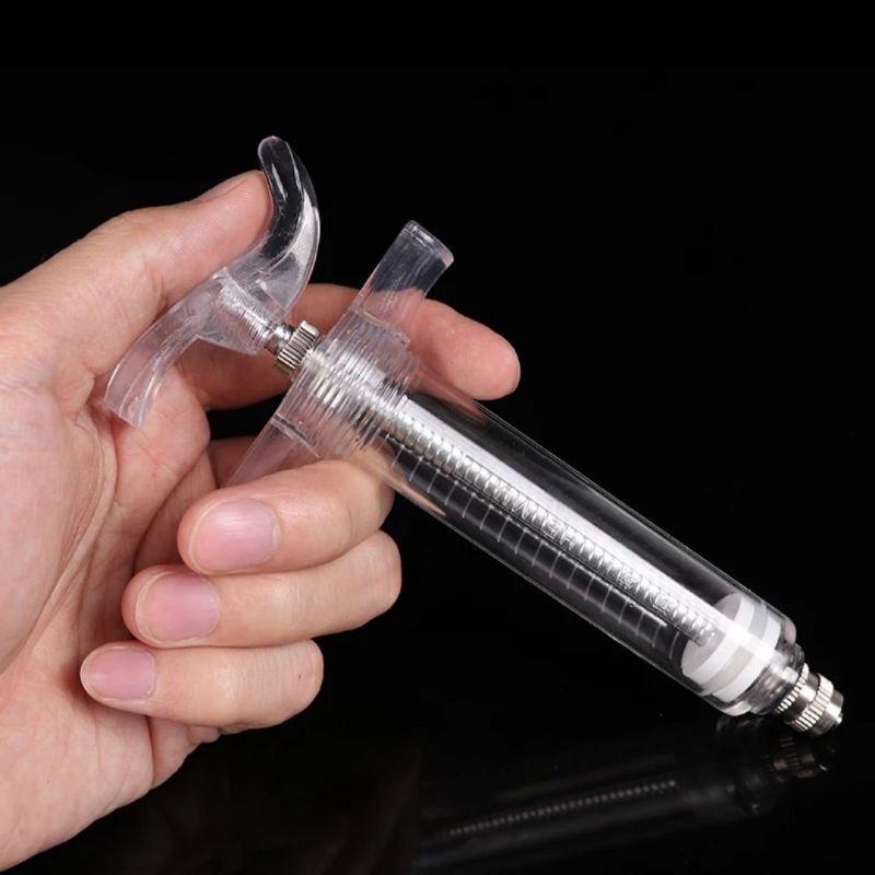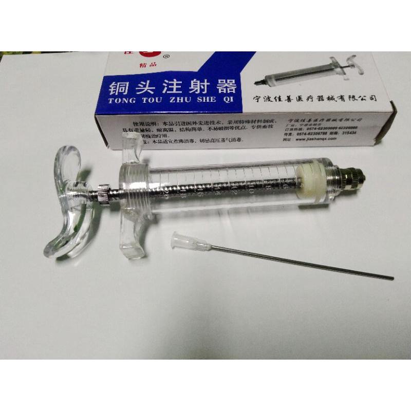 suntikan 10 dan 20 ml bahan akrilik mika tebal tahan banting, tulisan takaran timbul anti luntur ,dibatang besi dalam juga tertulis ukuran. sudah lengkap dengan jarum panjang 10 cm.plus bonus karet sill cadangan.