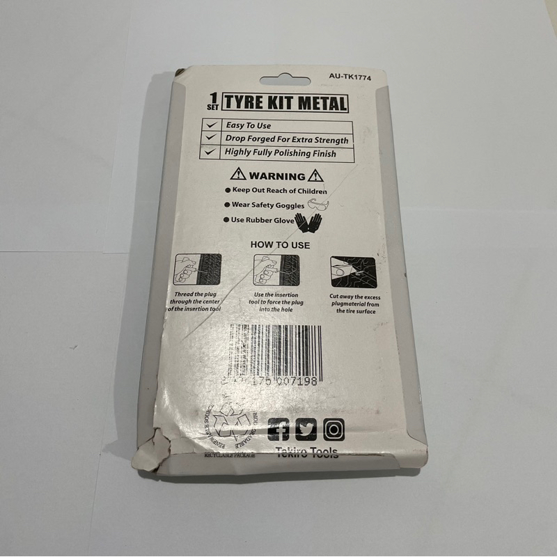 - Alat Tambal Tubeless Gagang Besi / Set Tyre Repair Kit. - Isi 1 set adalah 1 gagang besi tusuk, 1 gagang besi tarik dan 5 sealer cacing. - Harga diatas adalah harga 1 set. - Memiliki pegangan yang handy dengan batangan tebal dan lembut untuk mempermudah saat pemakaian. - Bahan besi yang sudah disepuh Chrome Vanadium. - Pabrikasi dengan metoda 'Drop Forging' untuk meningkatkan kekerasan gembok. - Fully Polish Finishing Grade Tinggi. - Produk ini sangat berkualitas dan presisi. - Merk : TEKIRO.