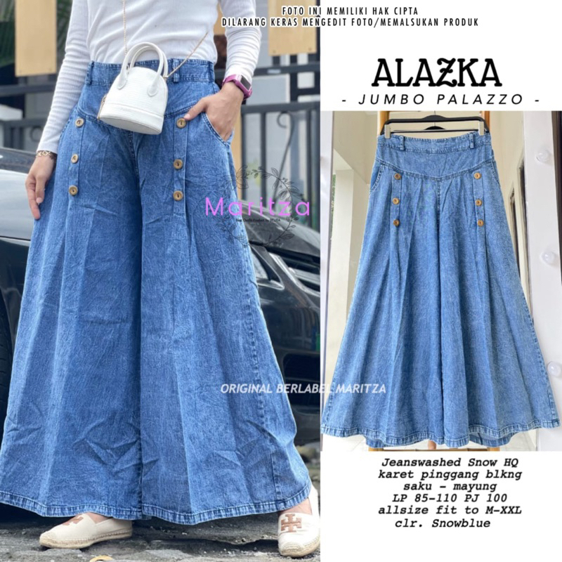 Ready celana jumbo palazo bahan jeanswashed, karet pinggang belakang , saku kanan kiri , bawah mayung