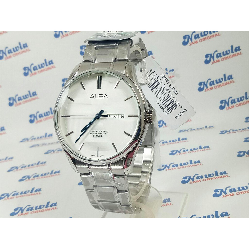 Brand Alba Series Prestige Model no. AV3471X1 Gender Man Watch Shape Round Display Analogue Movement Quartz Glass Dome Mineral Crystal Dial Color White Blue Hands Case Material Stainless Steel Case Diameter 43.5 mm without Crown Case Thickness 11 mm Band Width 20 mm Band Material Stainless Steel Clasp Fold Clasp with Push Button Release Feature Day-Date Water Resistant 50M Original Alba include Box, Manual and Warranty Card for 1 Year