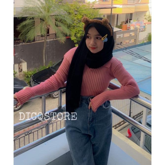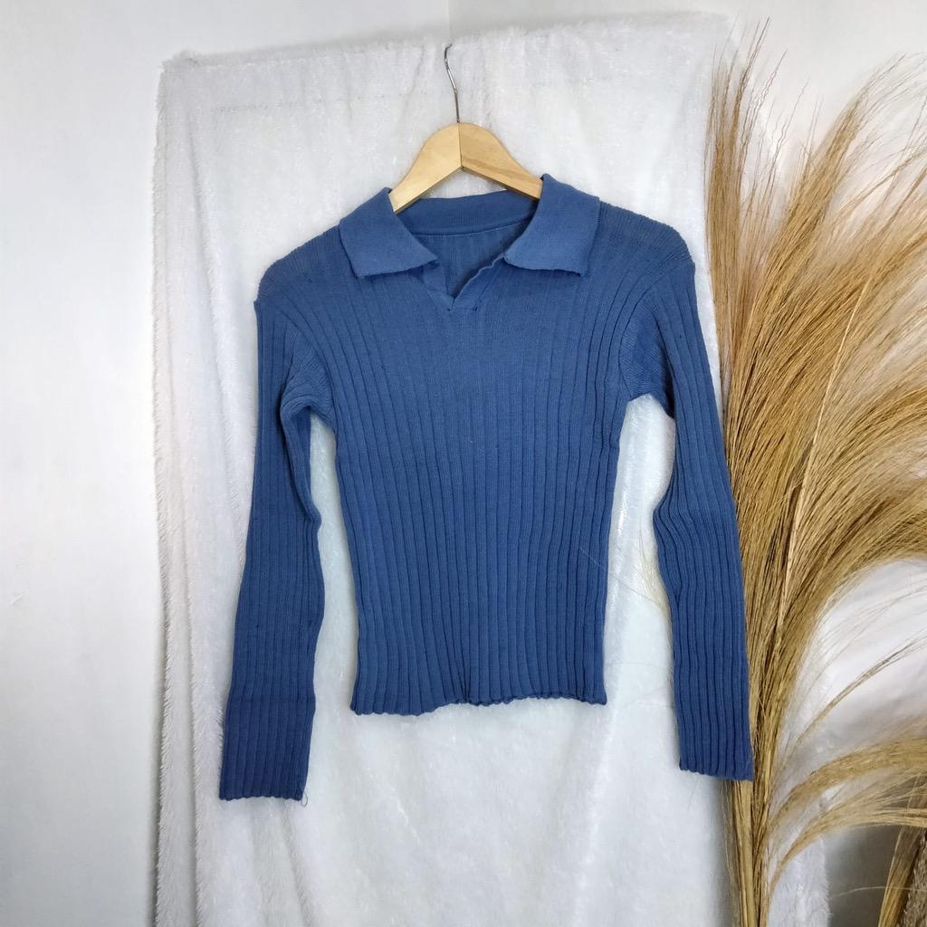 Detail ALENA LONG SLEEVE POLO ATASAN WANITA/Atasan Rajut