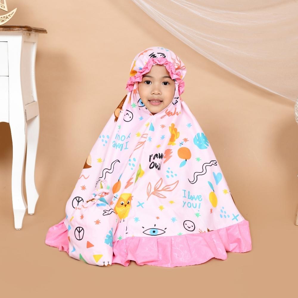 Detail Alesha Mukena Anak Perempuan usia 1 - 6 Tahun ( kids Size M / L / XL ) - Happy Owl Pink