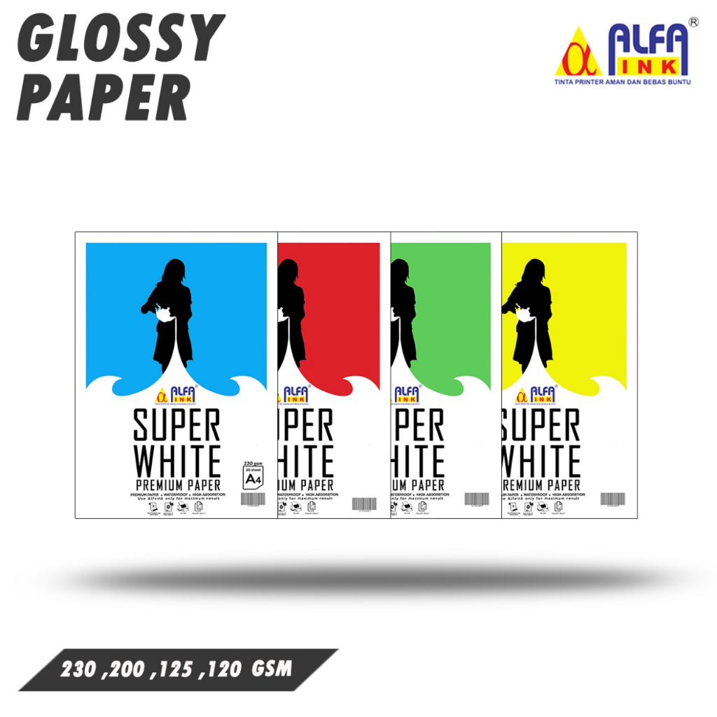 ALFA INK SUPER WHITE GLOSSY A4~KERTAS FOTO MENGKILAP