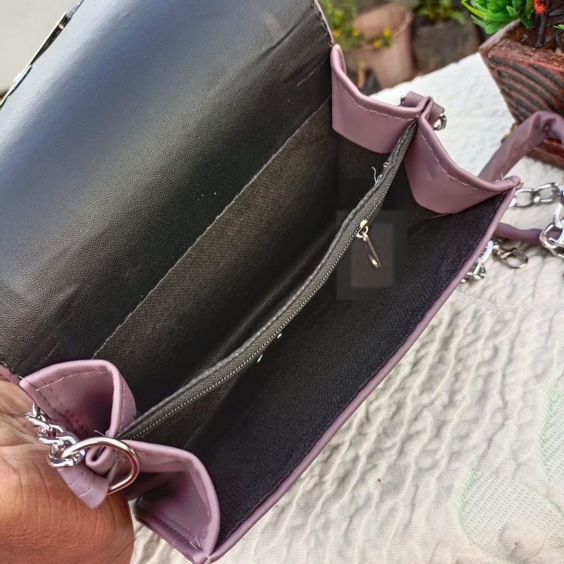 TasFashion wanita, selempang dua ruang unik bahan salur tidak mudah mengelupas, bahan lemes tidak lecek. Dilengkapi variasi tali rantai