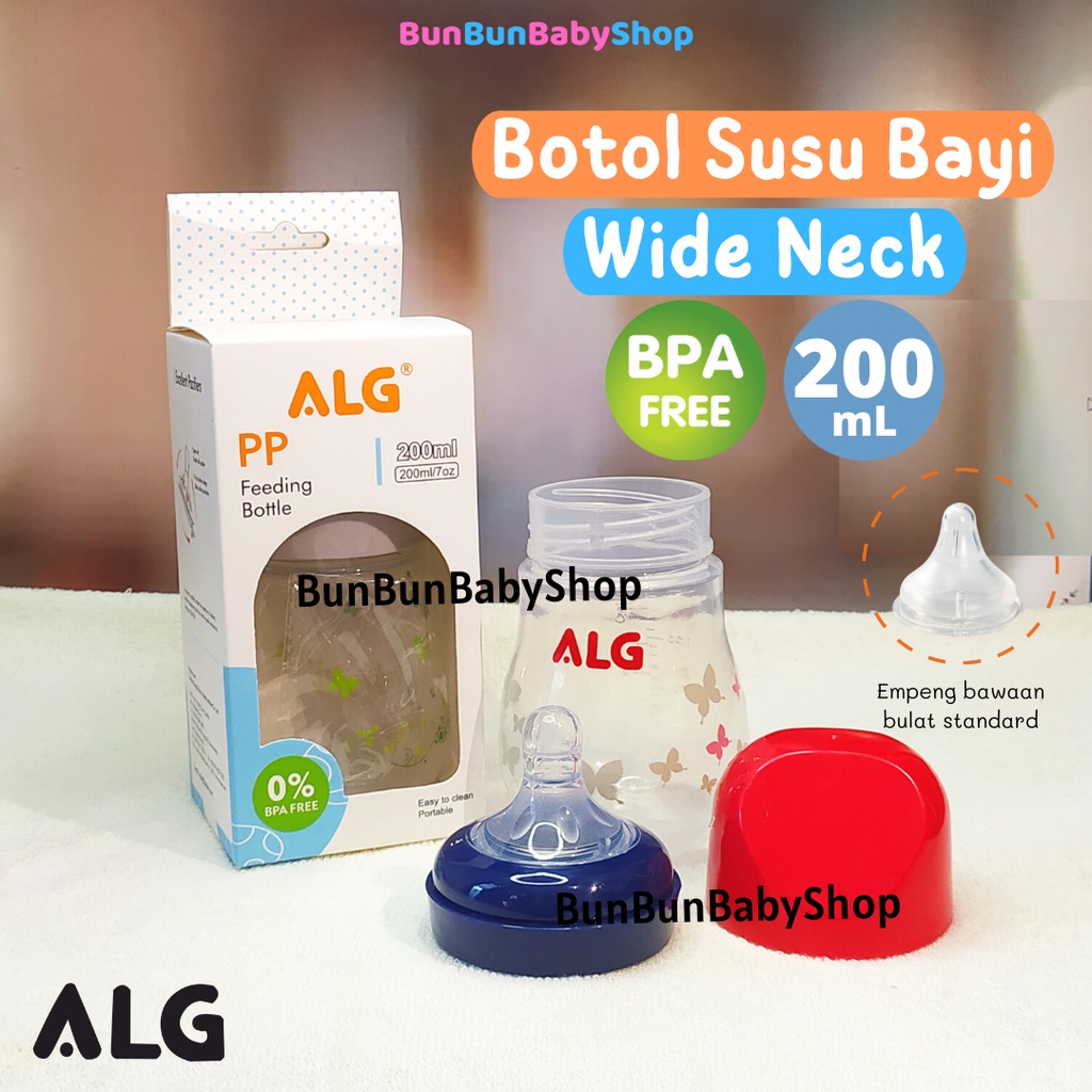Botol Susu Bayi ALG 100ml, 200ml, 280ml BPA FREE Keistimewaan : - Botol bundar dari bahan Polypropylene (PP) yang dilengkapi dengan Wide Neck - BPA FREE artinya bahan tersebut terbebas dari bahan BPA atau bisphenol-A. BPA (bisphenol-A) merupakan zat kimia sintetis yang biasa digunakan pada beragam produk, salah satunya botol bayi. - Empeng berbentuk bulat (standart)