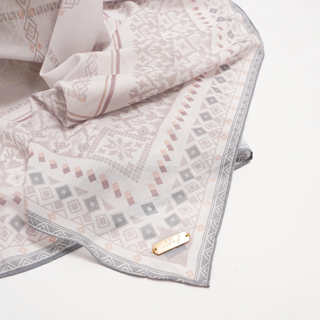 Detail Kerudung Alif: Bahan: Paris Premium Korea dengan karakteristik Ironless (Tidak Mudah Kusut) Ukuran: 115 cm x 115 cm Berat: 97 gr Detail Produk: Terdapat Plat Besi dengan Logo Alif dengan ukuran 3cm x 1cm