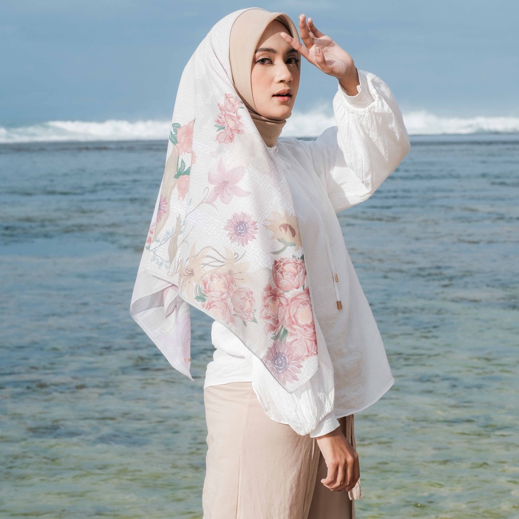 Detail ALIF KERUDUNG SEGI EMPAT MOTIF PARIS PREMIUM KOREA - PINWHEEL IN WHITE SUGAR ( SPR-D10-001 )