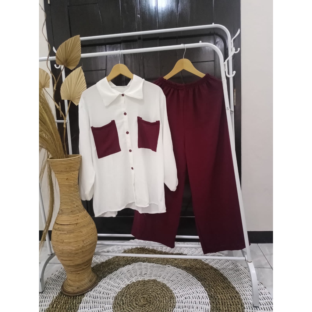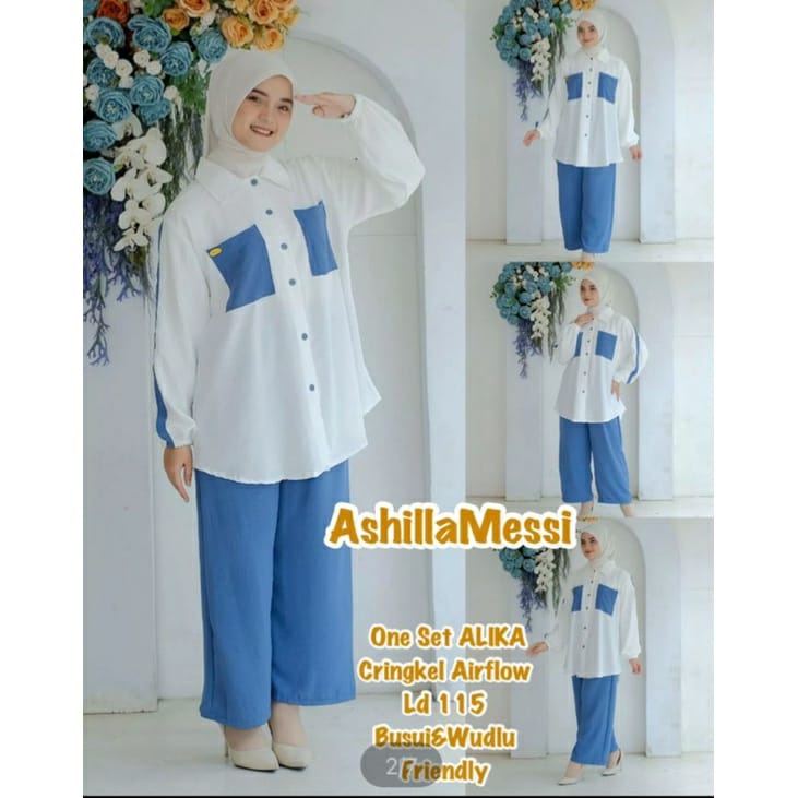 ALIKA SET CRINKLE AIRFLOW PREMIUM / SETELAN KEMEJA KOMBINASI DAN CELANA KULOT / SETELAN WANITA TERBARU (BANYAK SIZE M. L. XL. XXL)