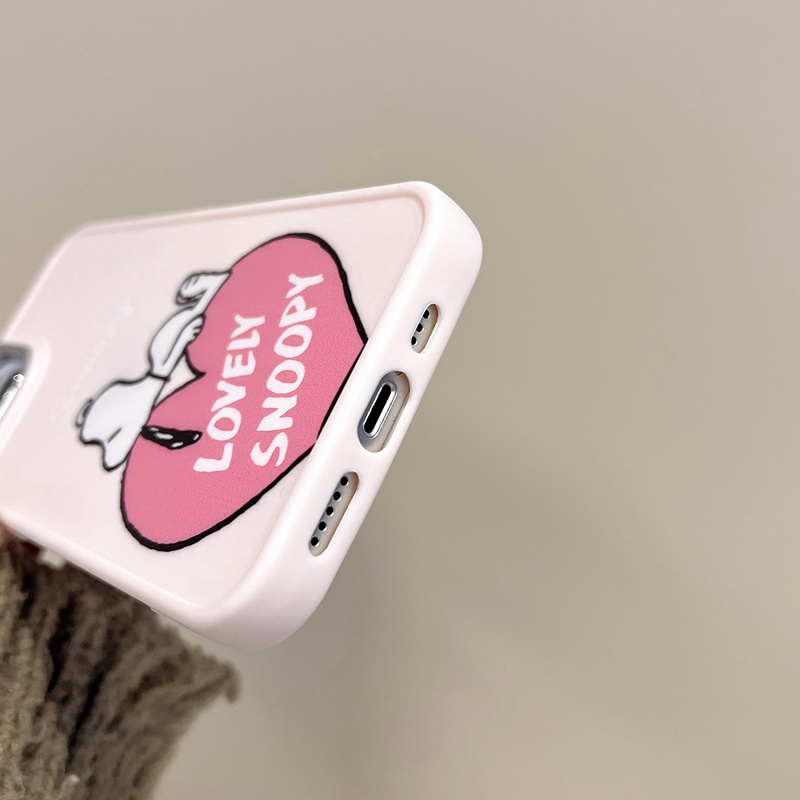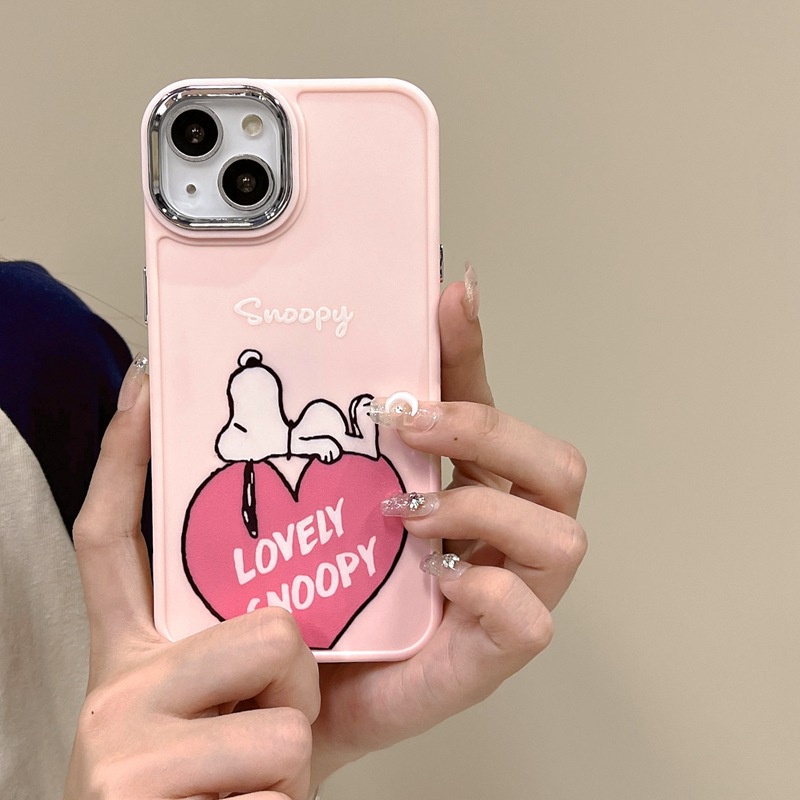 Handphone & Aksesoris > Casing & Skin > Casing & Skin Handphone > All New Electroplated Camera Skin Silicone Soft Case IPhone 11 12 13 14 Pro Max Women's Fashion Gift Cute Cartoon Phone Case Pink Love Snoopy