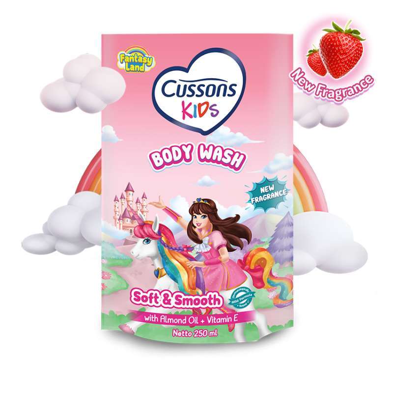 Cussons Kids Body Wash 250ml REFILL : Sabun Mandi Cair yang diformulasikan khusus dengan Minyak Jojoba dan Vit. E, dengan pH seimbang, menjaga kehalusan kulit, kesegarannya membangkitkan keceriaan aktif. Dengan wangi berries segar yang tahan lama.