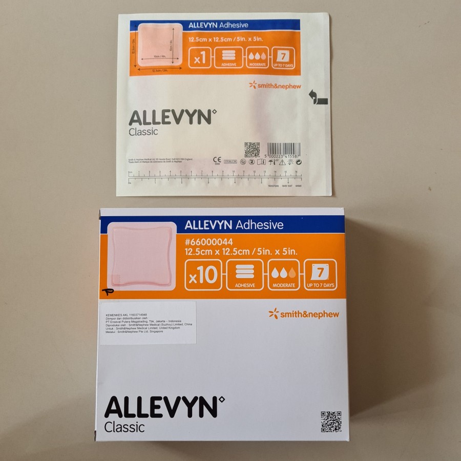 Allevyn Adhesive 12.5x12.5cm adalah pembalut luka dengan foam untuk menampung exudat atau nanah pada luka, seperti ganggren, ulcus, decubitus dan CA.