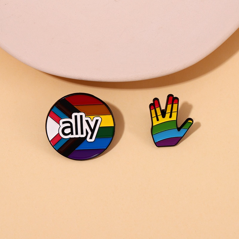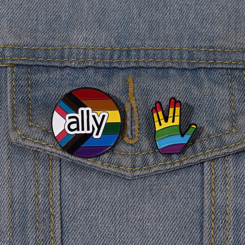 Detail Ally Progress Pride Rainbow Flag Tangan LGBTQ Enamel Pin Bros Lencana Logam Kerah Pin Baju Kerah Perhiasan Aksesoris Hadiah