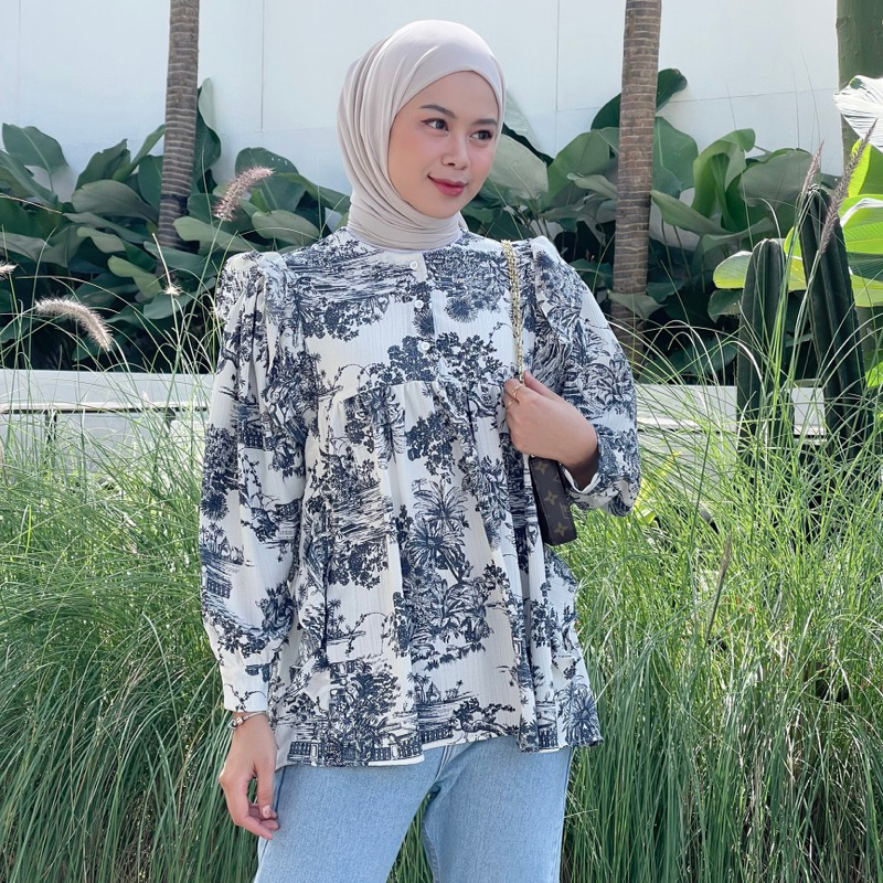 Size : Lingkar dada -+100cm Panjang top 70cm Panjang lengan 56-58cm (diukur dari ruffle bahu)