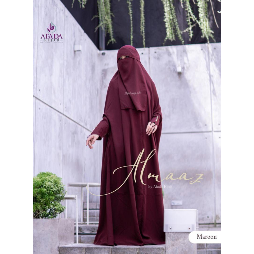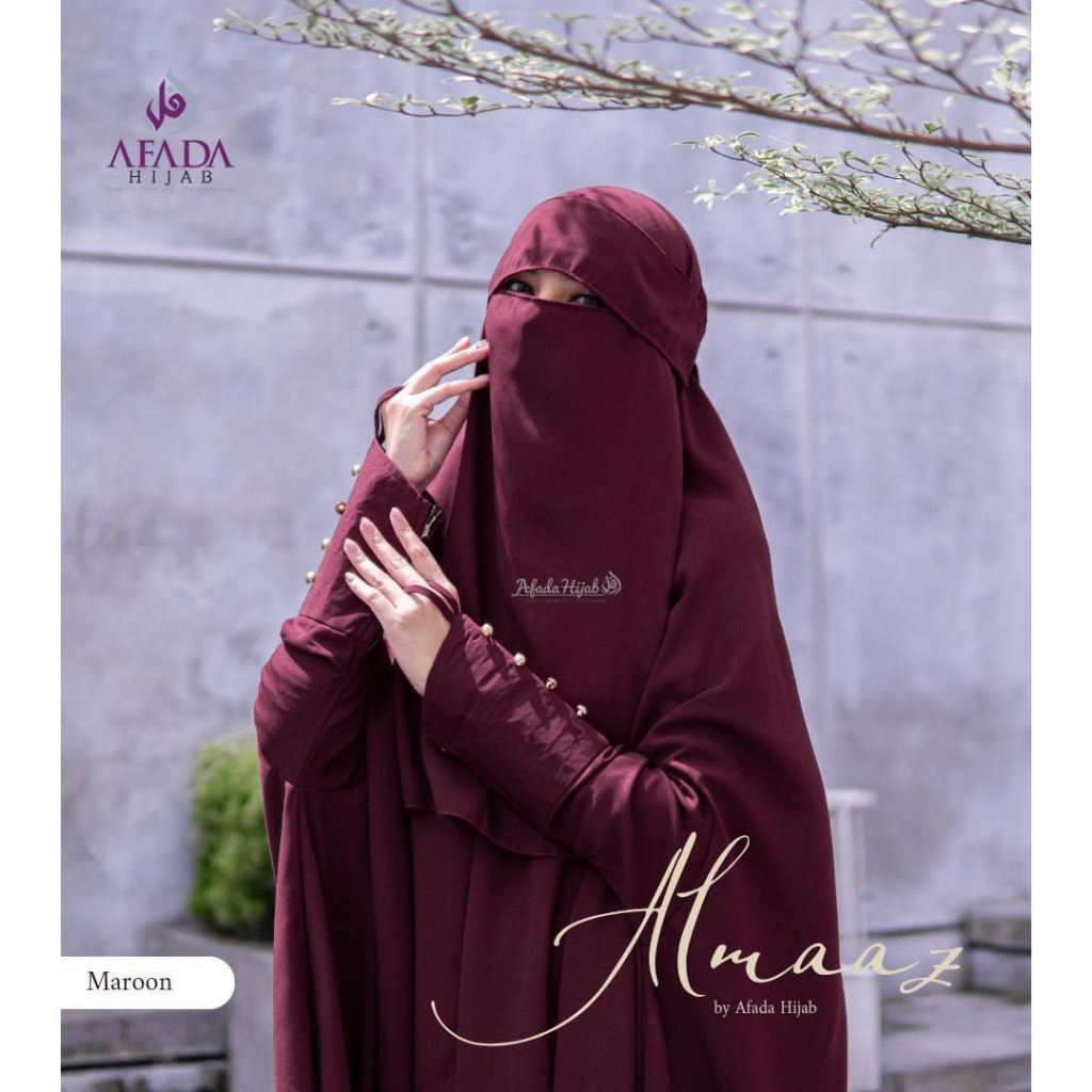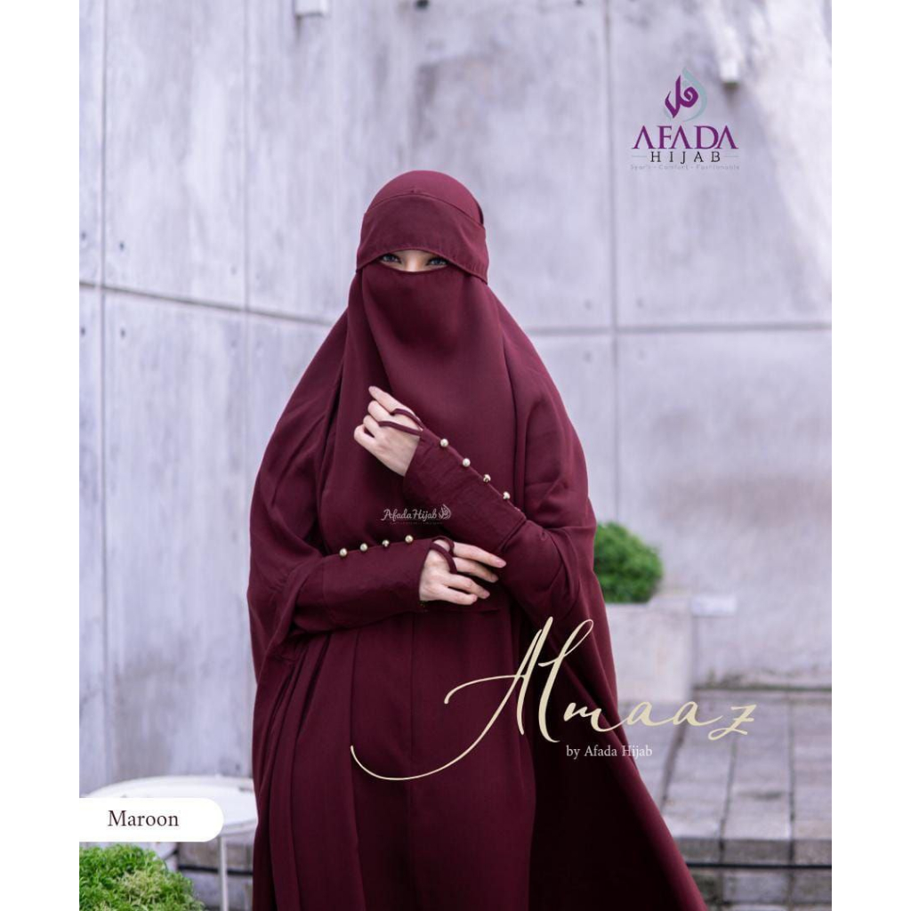 Detail ALMAAZ OVERHEAD by AFADA klambieakhwat | long khimar bahan kashmir