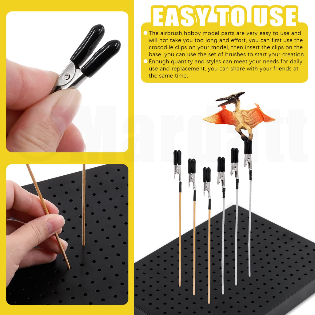 Salah satu tools wajib waktu ngecat model kit kamu adalah painting clip. Painting clip ini berfungsi untuk memegang part yang akan dicat sehingga pengecatan dapat dilakukan sekaligus dalam jumlah part yang banyak, hemat tempat dan cepat.Gagangnya kokoh dan tidak goyang ketika ditancapkan ke paint station dan ketika ternkena semprotan cat.