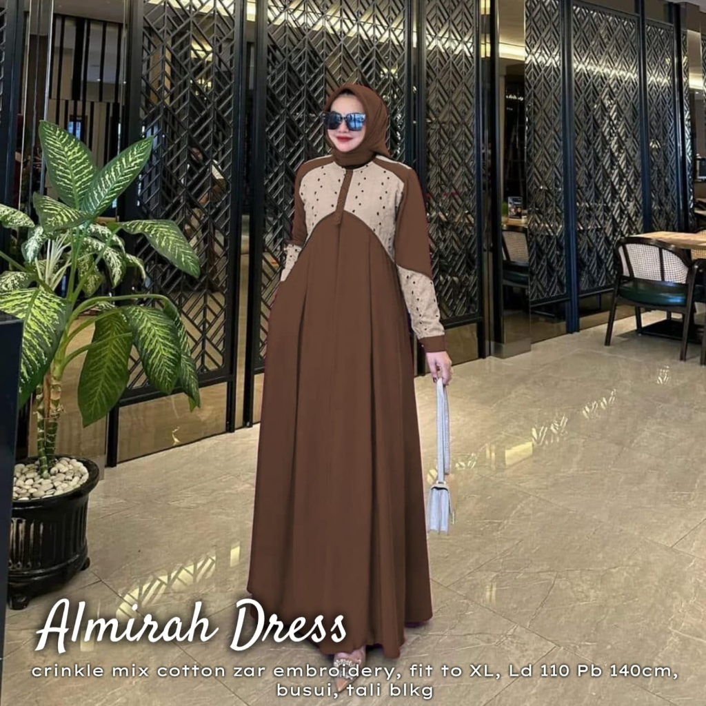 ALMIRAH DRESS ANGGUN SIMPLE CRINKLE KEKINIAN bahan crinkle mix cotton zar embroidery LD 110 CM PB 140 CM busui,tali belakang