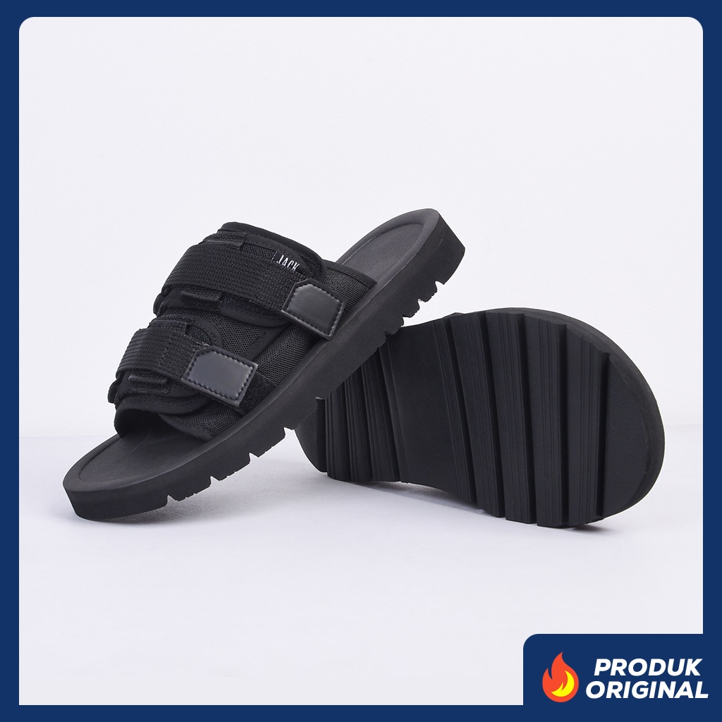 ALMO FULL BLACK x JACK Sandal Casual Hitam Pria Sendal Slide Jalan Santai Harian Slippers Main Hangout Nongkrong Slop Kondangan Lebaran Slip On Remaja Dewasa Selop Kerja Semi Formal Premium Strap Flip Flop Sport Fashion Men Footwear Keren Terbaru Kekinian