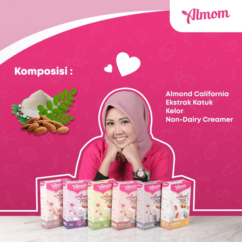 Almom bukan hanya menambah nutrisi tapi juga menjadi booster ASI yang ampuh. Kandungan yang terdapat pada almom adalah kacang almond yang mengandung protein, kalsium, dan vitamin E. Almond juga sangat kaya akan sumber mineral seperti magnesium, tembaga, fosfor, dan kalsium.
