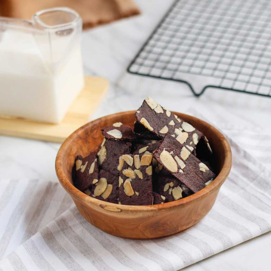 ALMONA Almond Brownies adalah brownies sehat yang terbuat dari: 1. California Almond yang tinggi antioksidan 2. Gandum pilihan yang kaya serat 3. Kacang hijau yang tinggi asam folat