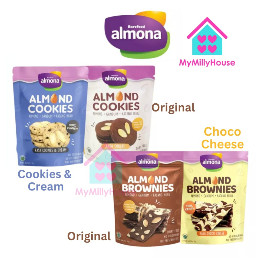 Apa keunggulan ALMONA Almond Cookies dibandingkan cookies sehat lain? 1. Dibuat dari 3 SUPER FOOD: almond, gandum, dan kacang hijau 2. Tinggi asam folat 3. Mengandung 9 vitamin tambahan, seperti vitamin C, E, D, B6, dan B12. 4. Tiddak mengandung produk sapi atau telur 5. Tidak mengandung pengawet ataupun pewarna sintetis.