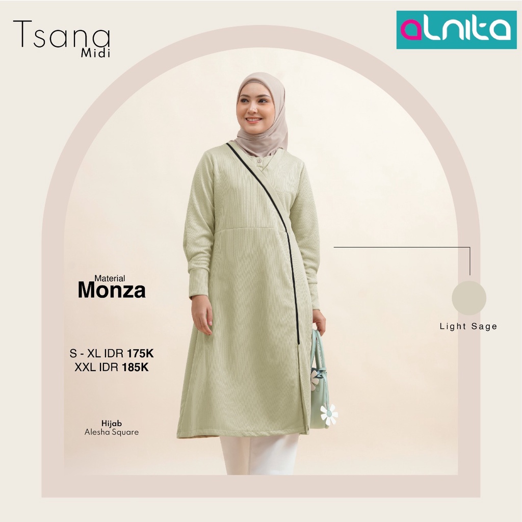 Detail Alnita Tsana Midi Bahan Monza Tunik Modern Simpel kekinian by Alnita bisa COD