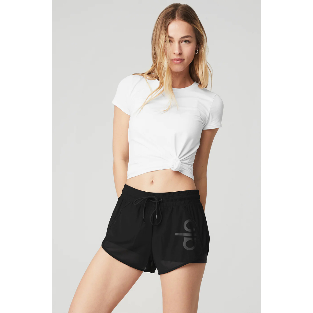 DESCRIPTION Your two absolute essentials, combined — Alosoft & easy, wear-everywhere tees. The Alosoft Finesse Tee is airy & ultra-soft, perfect for sweaty yoga sequences or completing your perfect street look. Hook up this relaxed staple with colorful bikers or cool capri leggings and head out.