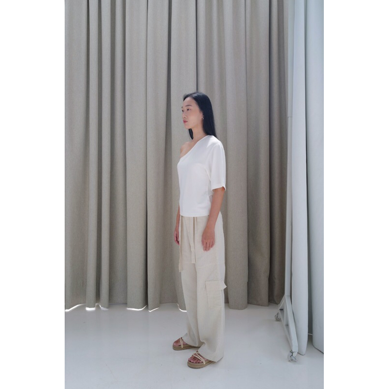 Detail ALOES - Allen Asymmetrical Top / Blouse / Kaos Miring / Kaos Crop