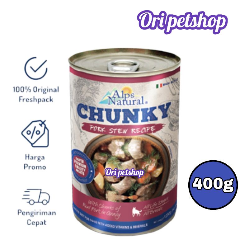 Hobi & Koleksi > Makanan Hewan > Makanan Anjing > Alps Natural Chunky Kaleng 400gr Makanan Basah Anjing - Pork In Gravy