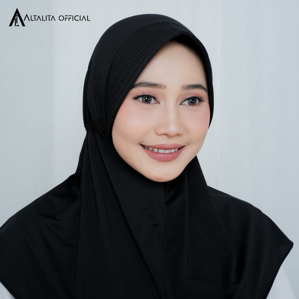 Fashion Muslim > Hijab > Hijab Instan > Altalita - Kerudung Serut Jokowi Instan Menutup Dada pet Antem Polos Bahan Jersey Premium Cocok untuk Sekolah Olahraga Volly Futsal Senam dan Sehari-hari