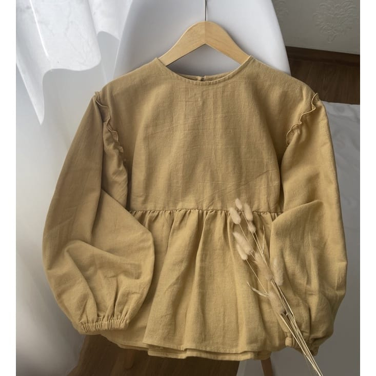 Pakaian Wanita > Atasan > Kemeja & Blouse > Aluna Blouse - Atasan Wanita - Blouse Lengan Balon - Atasan Crop Crinkle