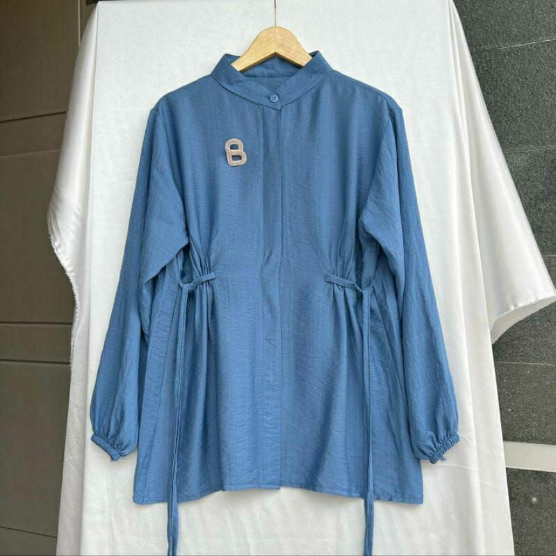 Detail : kerah sanghai, kancing depan aktif (busui),kerut samping kanan kiri, ada tali samping