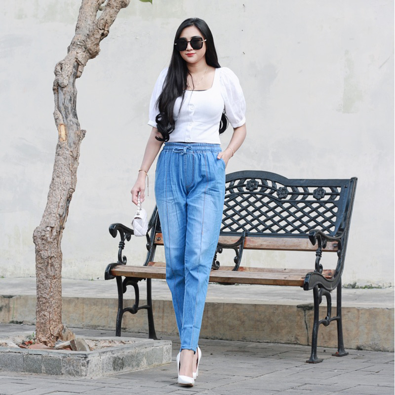 PRODUK DARI KONVEKSI SENDIRI ✂ *AMARA BAGGY JEANS PANTS* Fabric : Jeans Wash Non Stretch HQ (6,5oz) Colour : Dark blue, Light blue Size : STANDAR & JUMBO