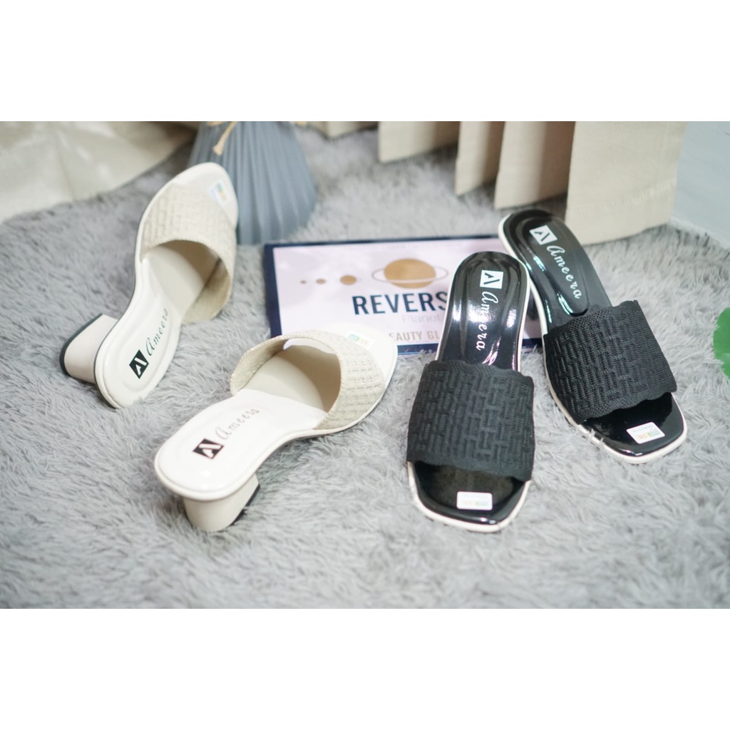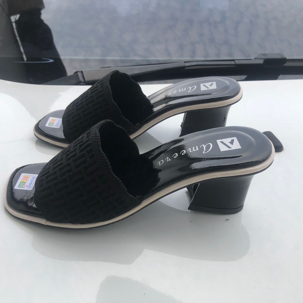 Detail Ameera - Sandal Slop Rajut Wanita Hak 5cm New Trend 2023