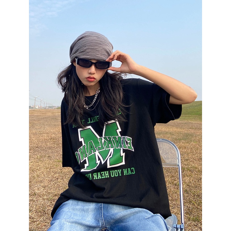 Detail american retro letter graffiti print t-shirt import lengan pendek oversize basic kaos cream couple