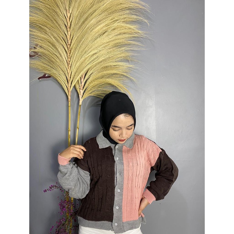 Detail AMORA CABLE CARDY / KARDIGAN COMBINASI / ATASAN RAJUT WANITA / CARDY CABLE KEKINIAN / CARDIGAN WANITA MOTIF KEPANG / PAKAIAN WANITA RAJUT / SWEATER CABLE CARDY
