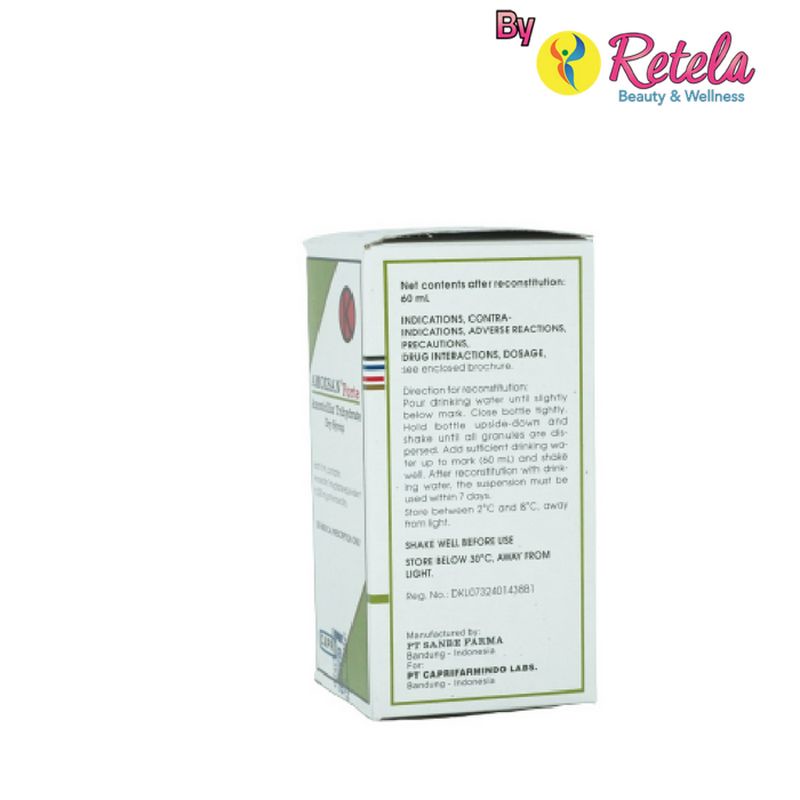 Kandungan/Komposisi: Tiap 5 ml: amoksisilin trihidrat yang setara dengan amoksisilin 250 mg.